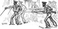 "as you stumble about the turrets [of the Cerberus], the engine room, and the cramped lower deck, garnished round the walls with any number of rifles, revolvers, and cutlasses hanging in their leathers."