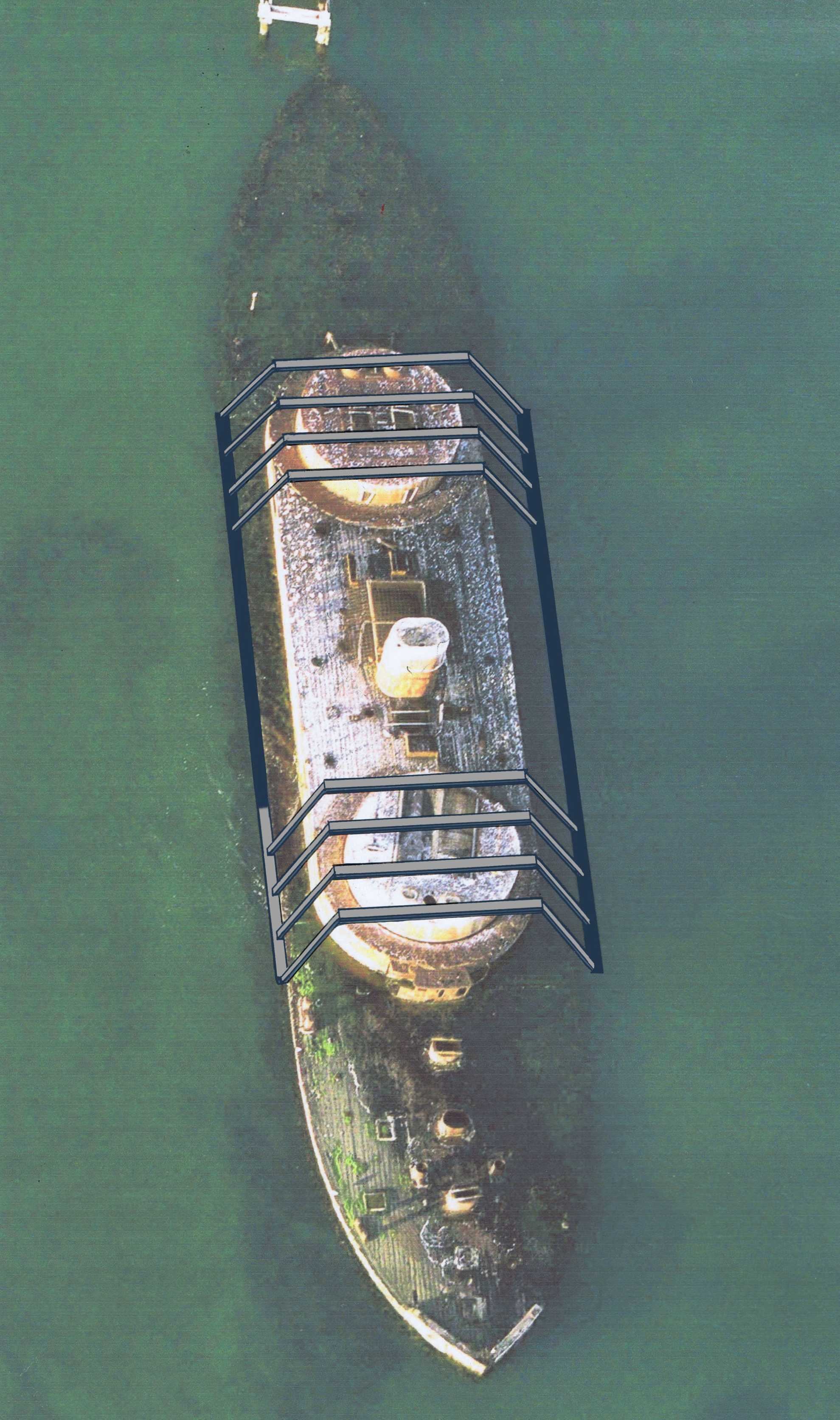 With funding currently not available to complete the whole stabilisation project, in 2010 approval in principal was given by the Federal Department of Heritage, Environment, Water & the Arts, to use the $500,000 grant to brace the gun turrets. The images below, commissioned by Friends of the Cerberus in 2010, illustrate how the bracing structure will appear when constructed.