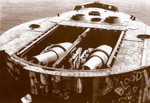 Aft turret guns photo courtesy of John King 1968 76.2 kb |