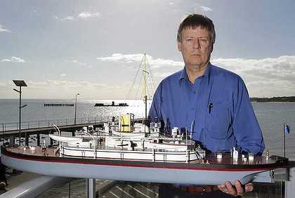 Friends of the Cerberus president John Rogers, holding a model of the ship, says the government has flip-flopped on its commitment.
